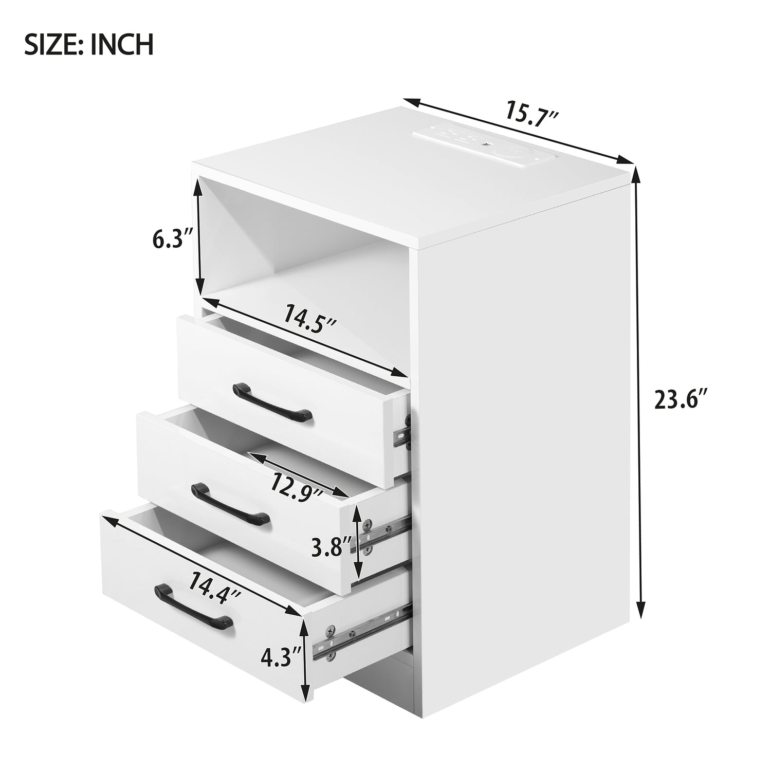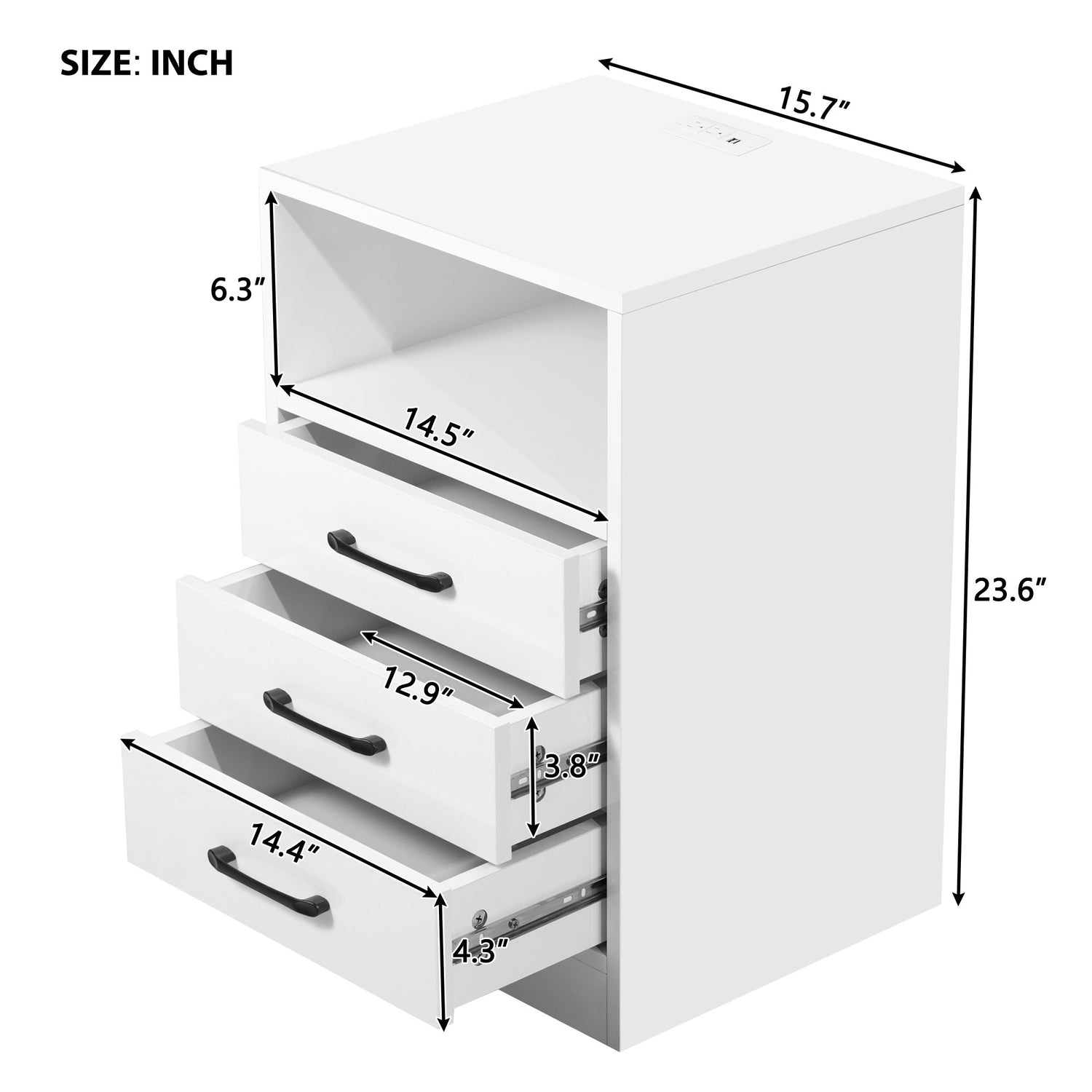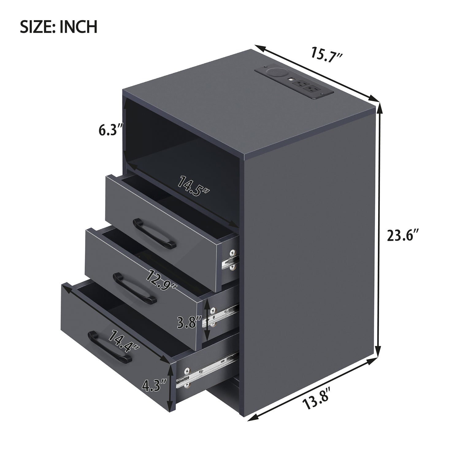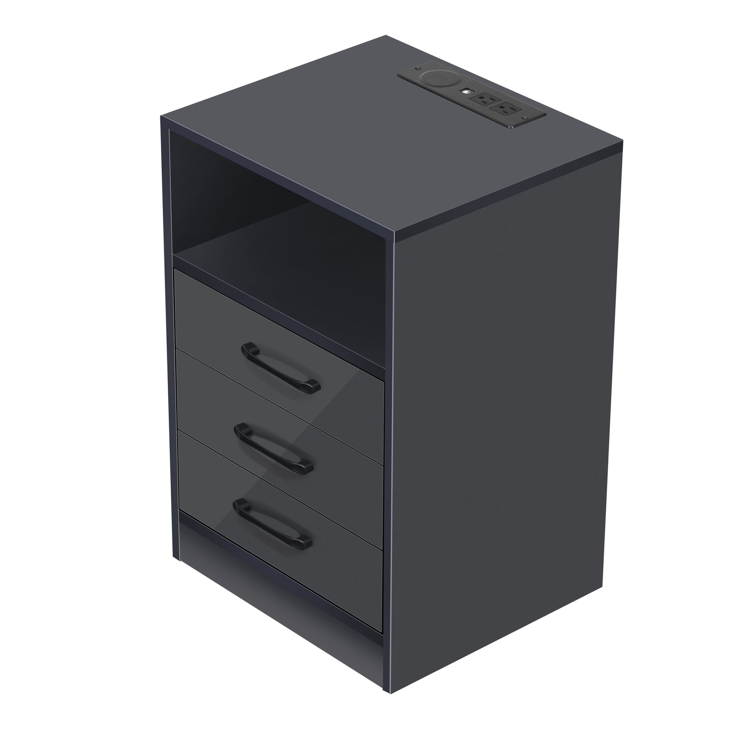 BTMWAY LED NIGHTSTAND WITH 3 DRAWERS, 1 WIRELESS CHARGING STATION, 2 CHARGE STATION, 2 PORTS, 16 COLOR LED Lights
