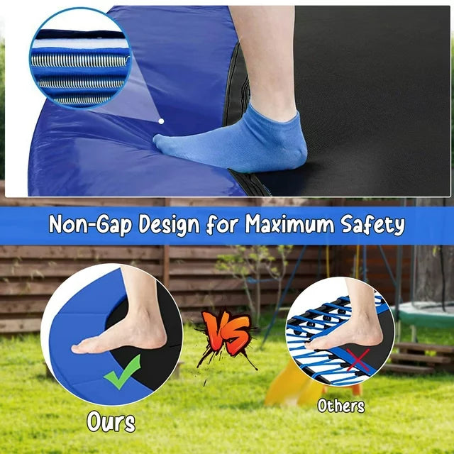 【Safety Protection Portfolio】:The trampoline provides a safe sports environment with a 360° Enclosure net and no gap design. The Spring and frame are tightly connected eliminating the gap between the jumping mat and the fence, making your child will never fall into the gap at the edge of the trampoline.